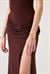 Zarafetiyle öne çıkan balıkçı yaka kolsuz, fermuar kapamalı, yırtmaçlı bel detaylı uzun elbise ile her an göz kamaştır.