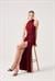 Zarafetiyle öne çıkan balıkçı yaka kolsuz, fermuar kapamalı, yırtmaçlı bel detaylı uzun elbise ile her an göz kamaştır.