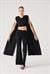 Yakası Şal Detaylı Fermuar Kapamalı Crop Bluz ve Beli Kıvırmalı ve Büzgülü İspanyol Paça Pantolon İkili Takım.
