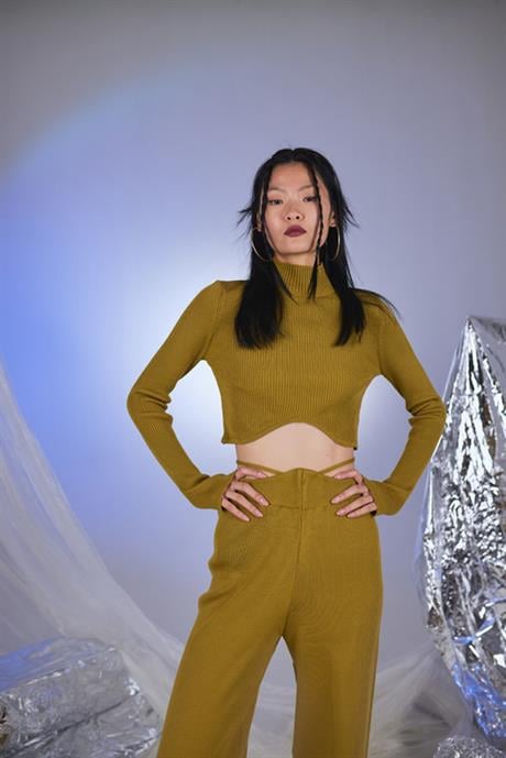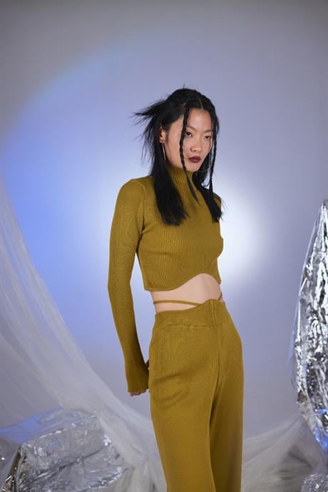 Balıkçı Yaka Crop Model Barmak Geçirmeli Kazak.
