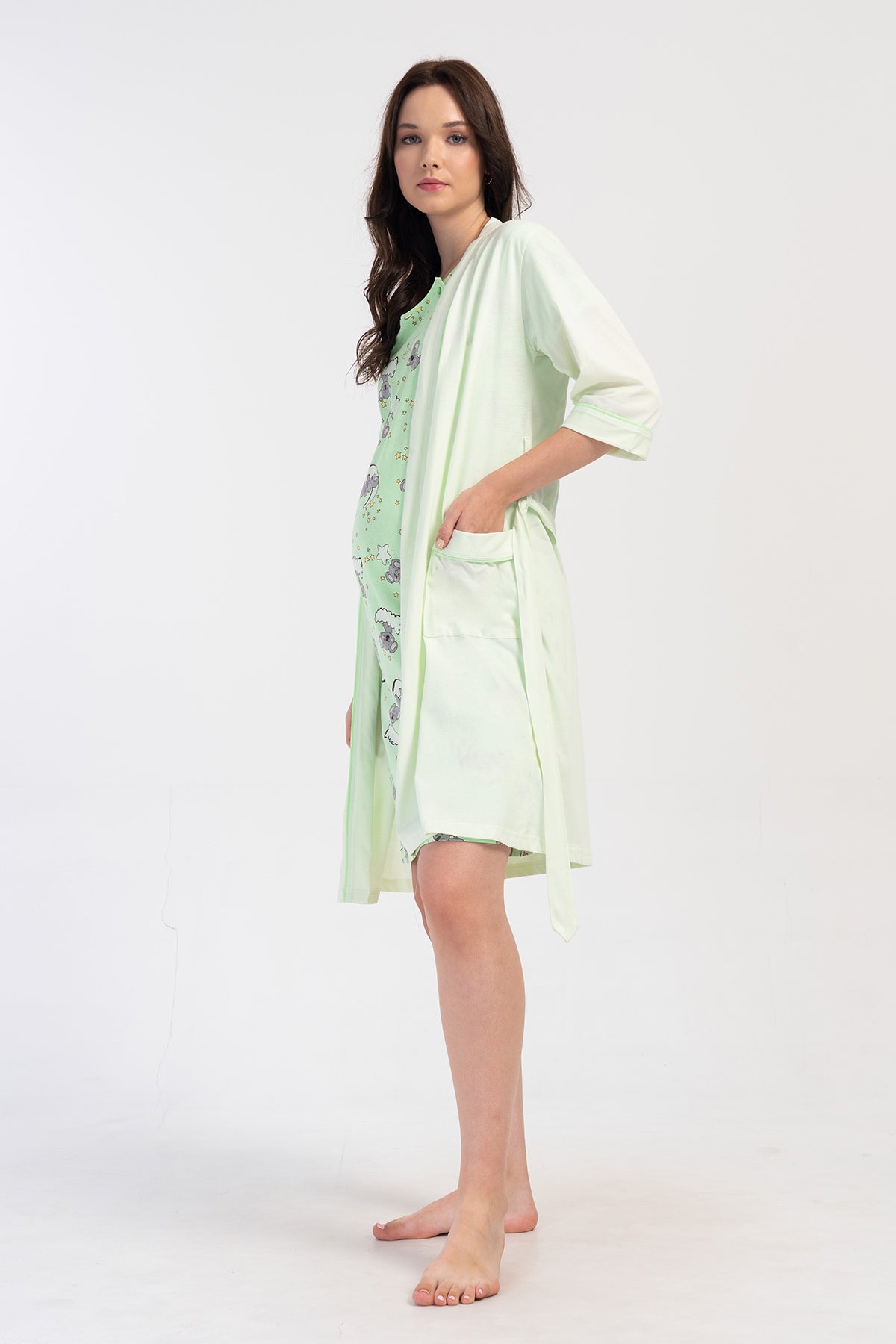 KADIN P.SUPREM CIFT PATLI KISA KOL HAMILE TUNIK+3/4KOL CEPLI SABAHLIK TAKIM