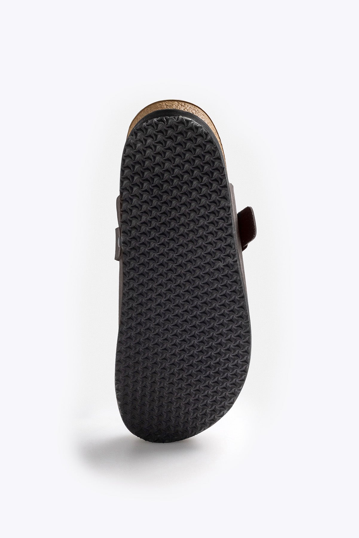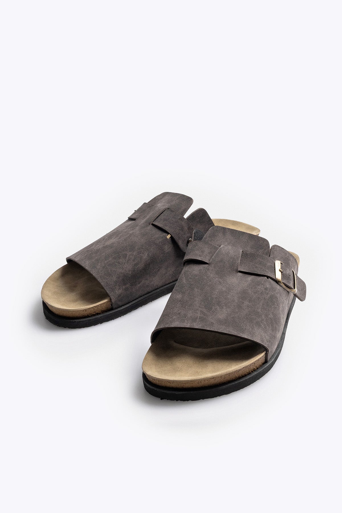 Toka detaylı, geniş bantlı, kalın tabanlı terlik.