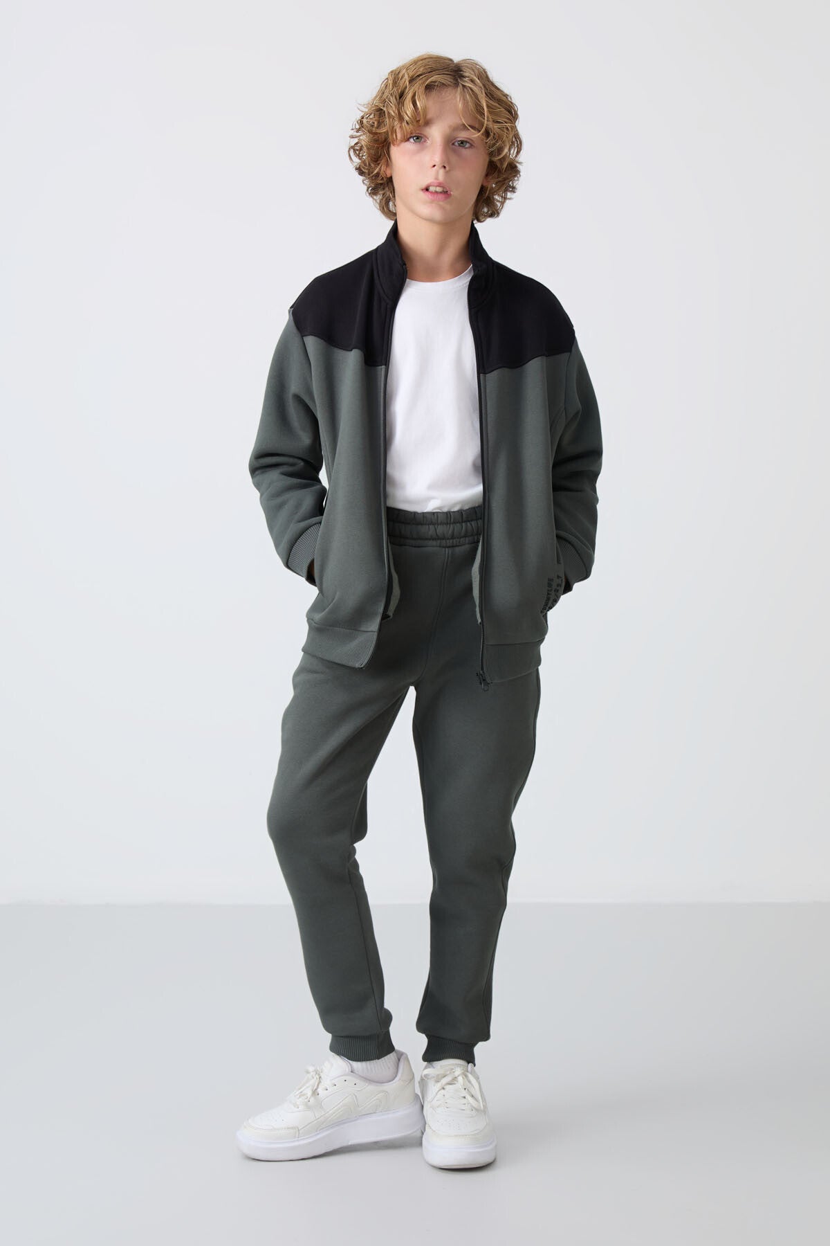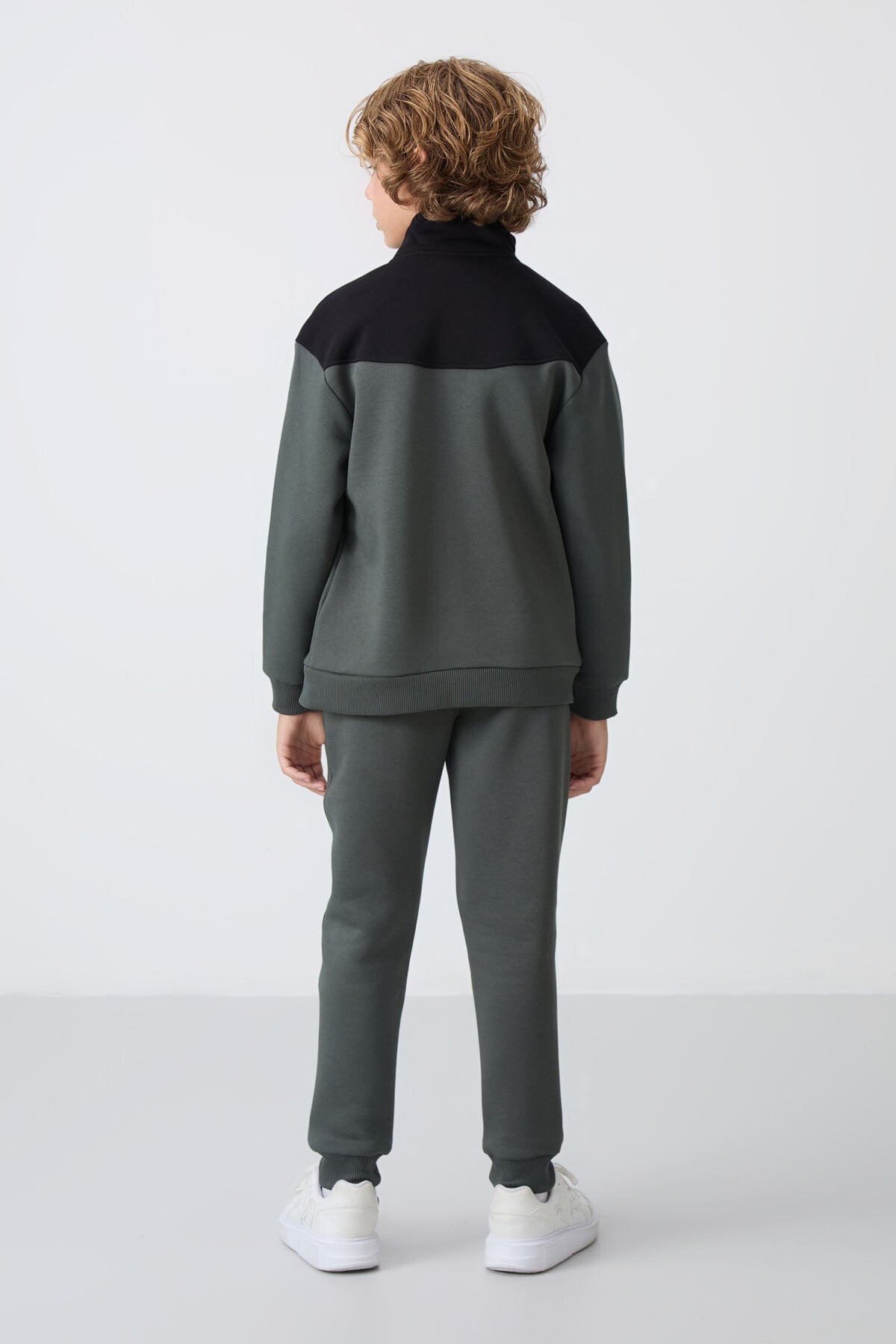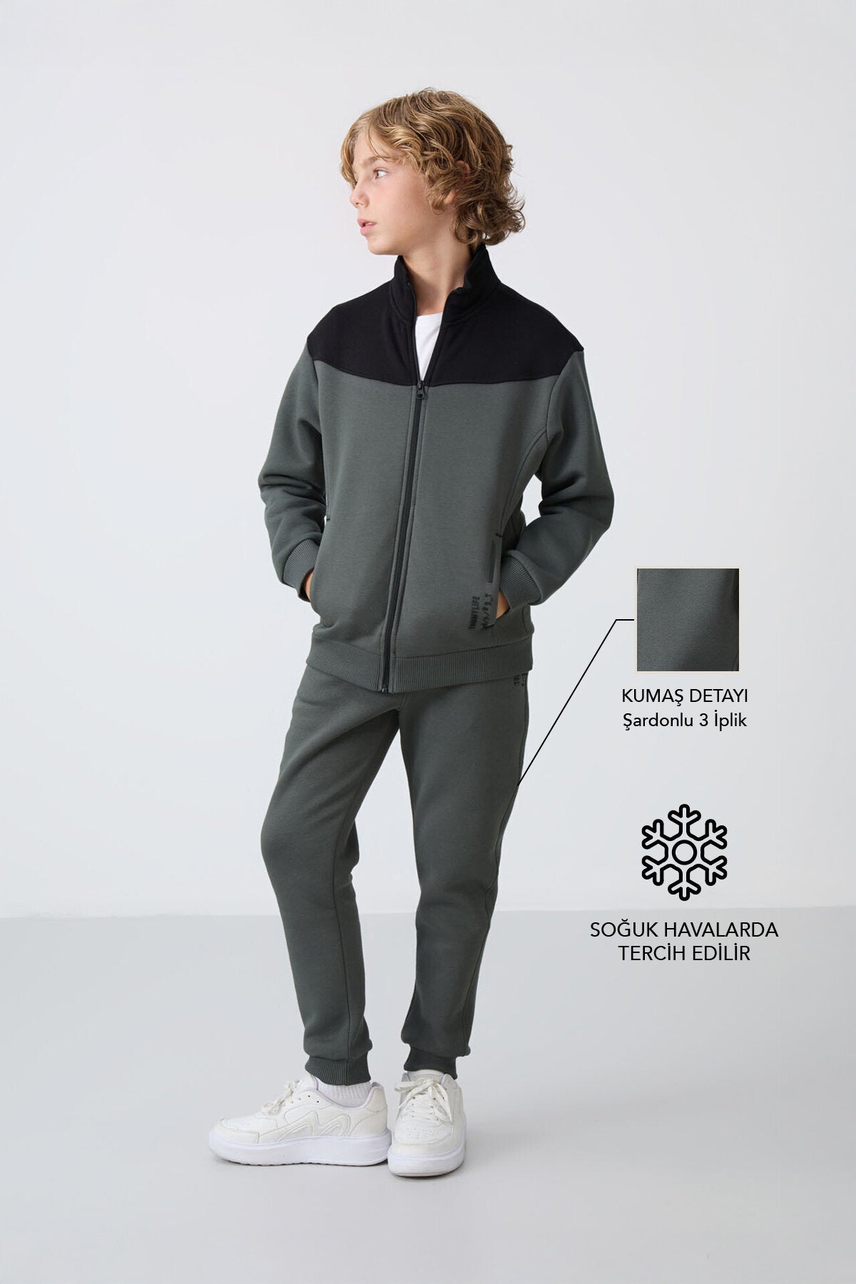Haki Pamuklu Kalın İçi Tüylü Yumuşak Dokulu Standart Fit Nakışlı Erkek Çocuk Eşofman Takım - 11240